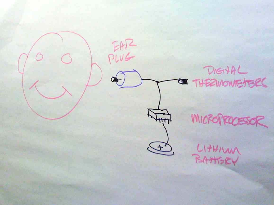 We "implanted" most of a ThrowieTalkie as fashion for the CyborgCamp pre-party at Vidoop. At the event itself we proposed converting it to an in-body/out-of-body thermometer.
