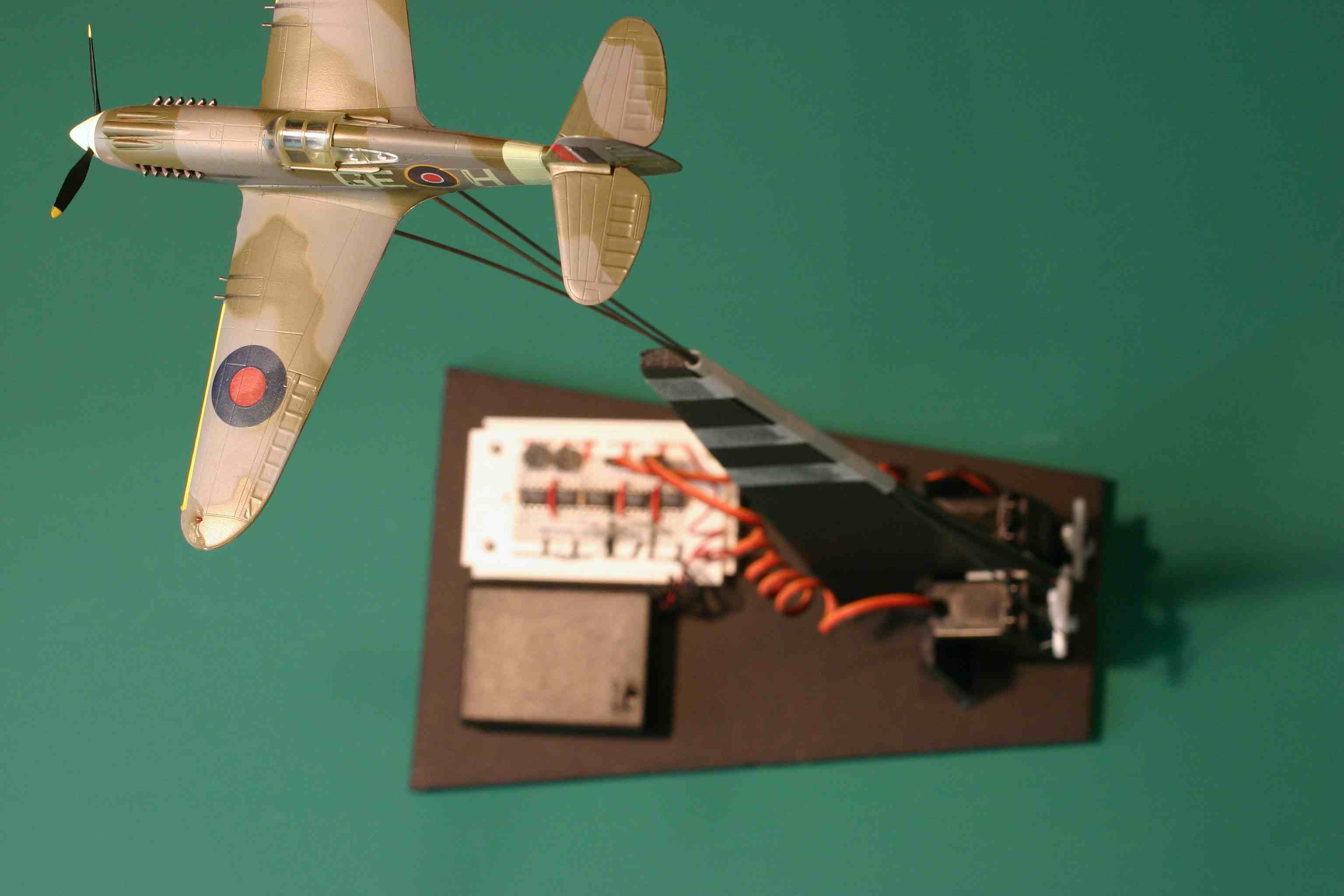 We bought a pre-built model airplane and now, just four hours into the project, have a working animated ServoPushrodModelAirplaneStand.
